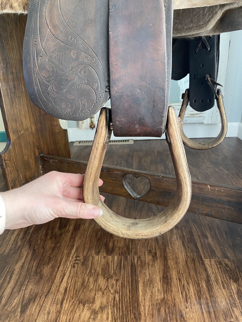 western saddle is in good, pre-owned condition. This saddle has scuffs, scratches, and some regular wear from many years of use; please review photos.