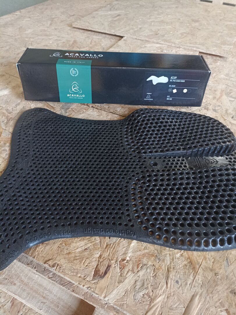 New, unused Acavallo gel pad with raised back. The pad was only put under the saddle once to try it on and then not ridden with it etc. as it was not needed after all.