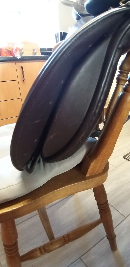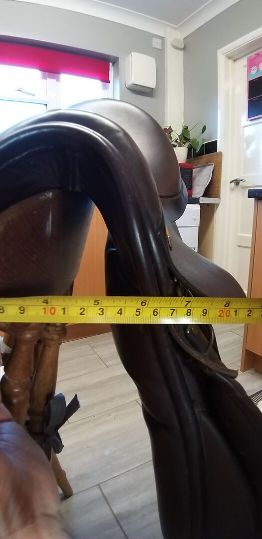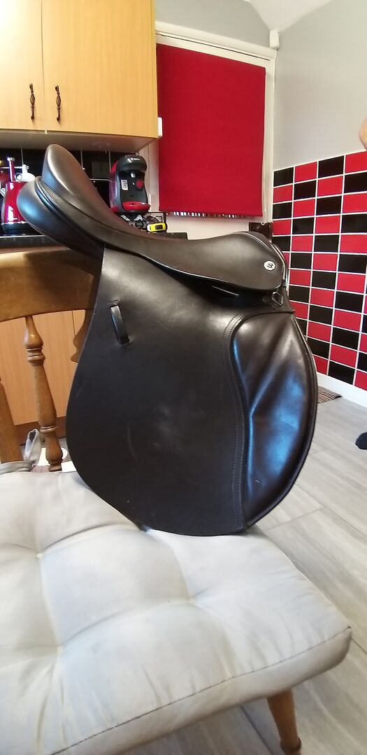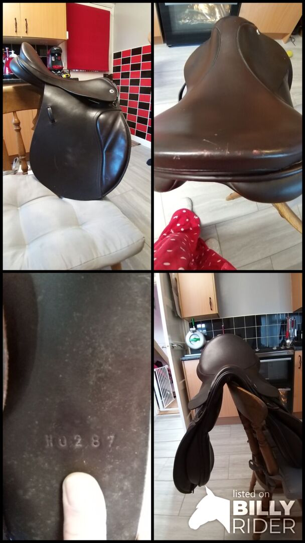 17.5 in brown cliff Barnsby saddle. Very little use and in good condition. Has a couple of scuffs please see pictures. Still plenty of life left in the saddle. I used it on my 15.3 hands medium build thoroughbred.