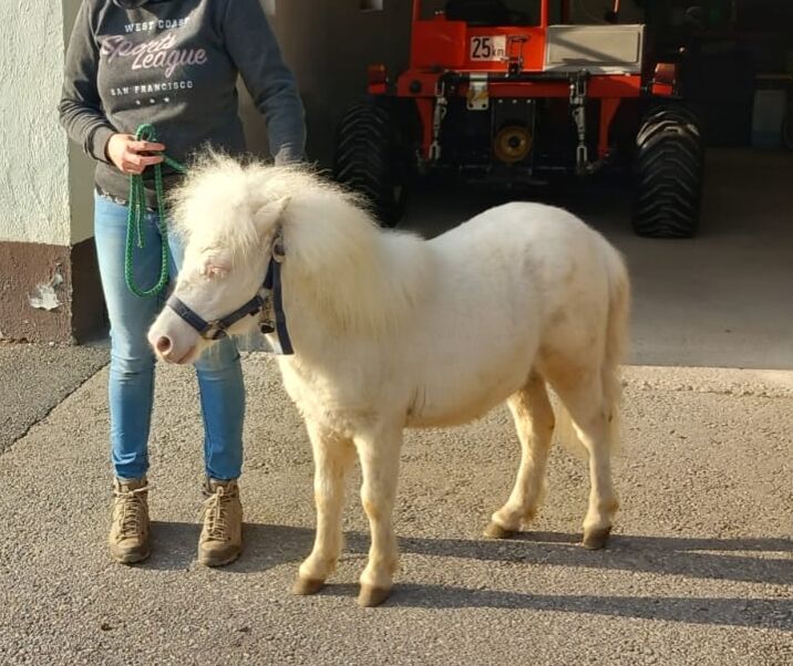 Merlin's great, light coat color (cremello) and his beautiful blue eyes make him something very special and a real eye catcher Mother and father have a super long mane and are characterless, good-natured ponies. He is totally curious, bright, and people-oriented. Merlin knows foal ABC, dogs, tractors, trucks, kids, cattle... but he needs consistent but loving training and encouragement due to his young age. He is chipped, vaccinated, dewormed and of course has a passport. The little man still wants to learn a lot, so we wish for him patient and nurturing hands.