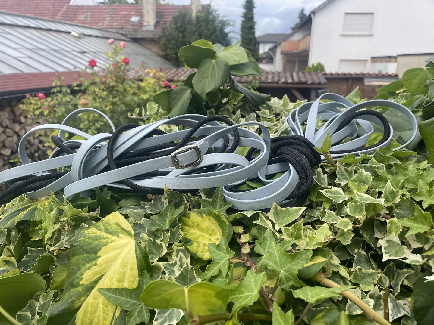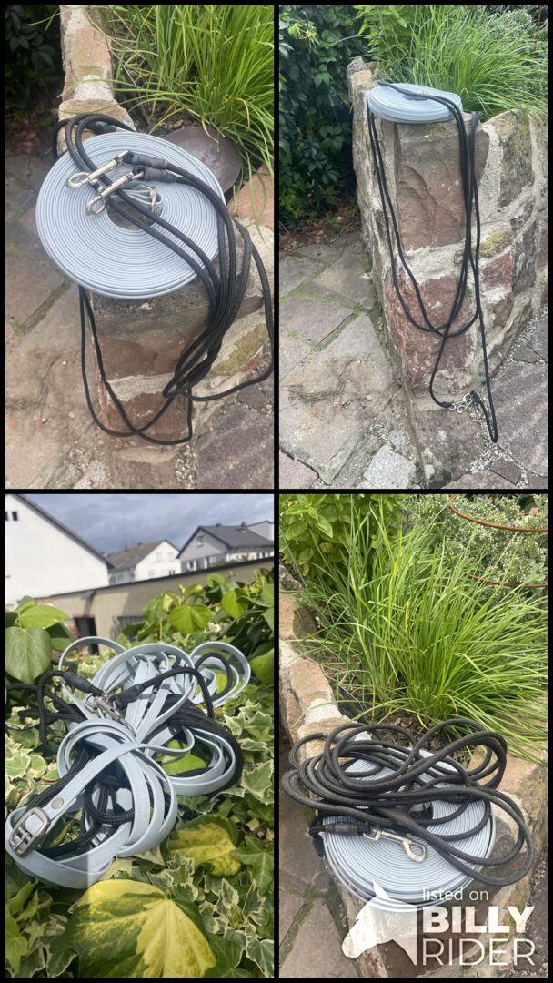Biothane double lunge, light blue, divisible with rope, 16 m - Selling my double lunge in light blue made of Biotane. The double lunge can be divided. It has 2.85 cm long smooth-running ropes so that it glides well. The double lunge line is 16 m long in total. The double lunge is used but fully usable and without defects. Plus postage.