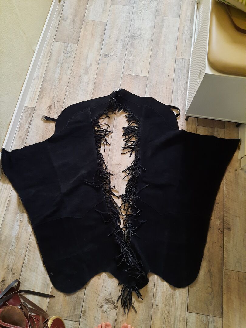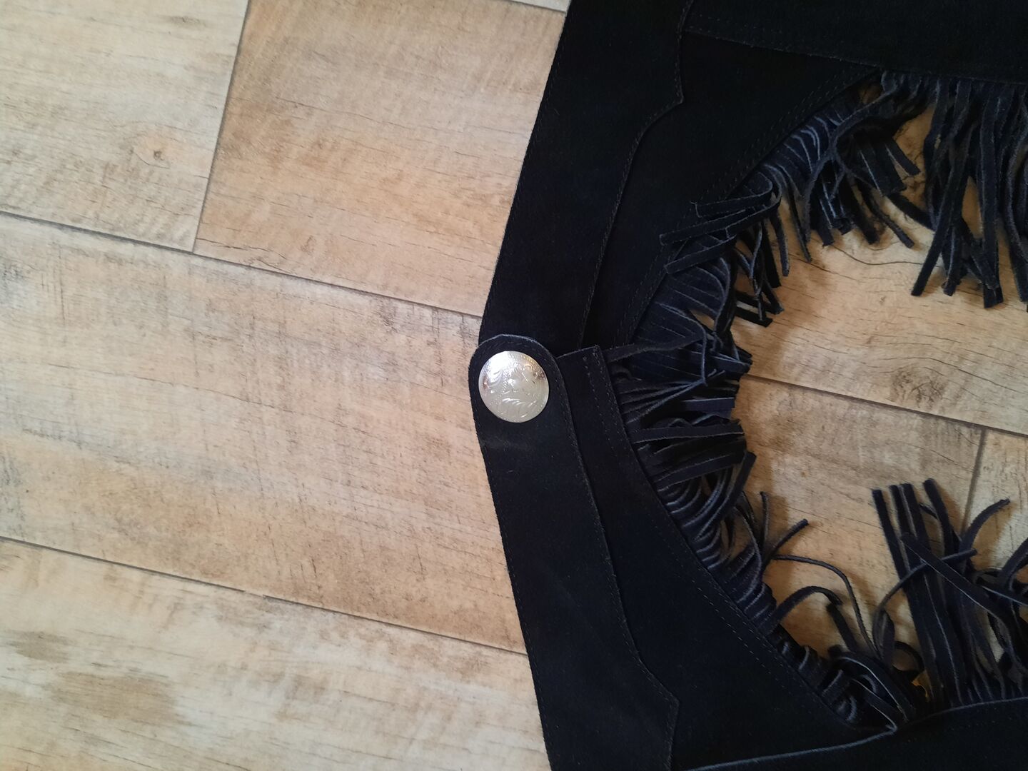 Black suede chaps with fringes - I offer comfortable, black suede chaps with fringes. Used once at a show.