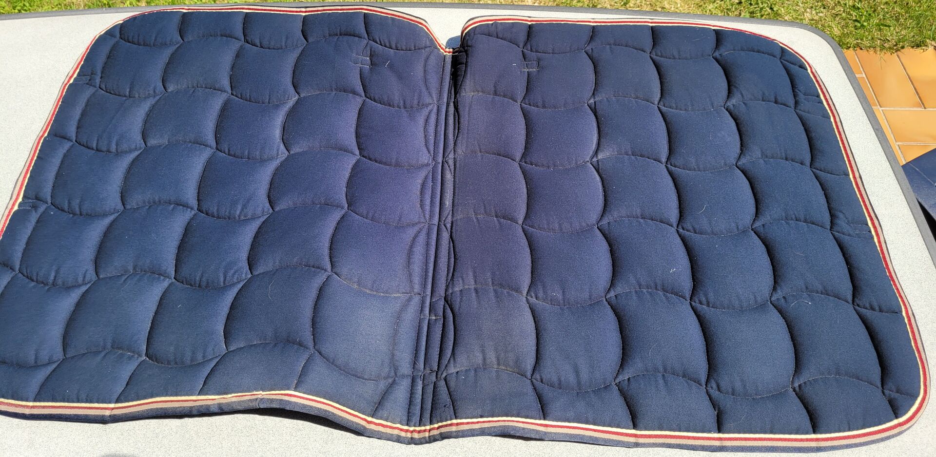 Blue cavalcade - The blue cavalcade is in good condition, has only slight traces due to the girth. However, the front and back are cleanly preserved, as well as the frame of the saddle pad.