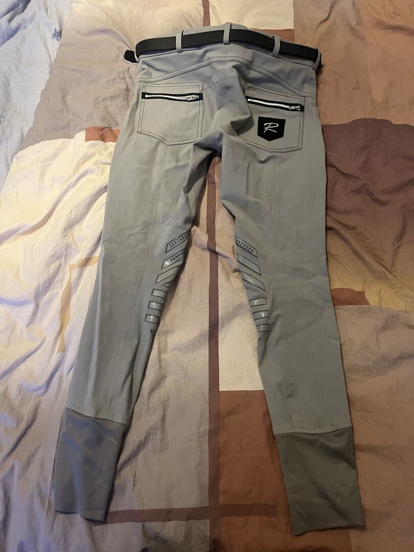 Breeches with knee grip and belt Gr S - Gray breeches with knee grip trim and belt