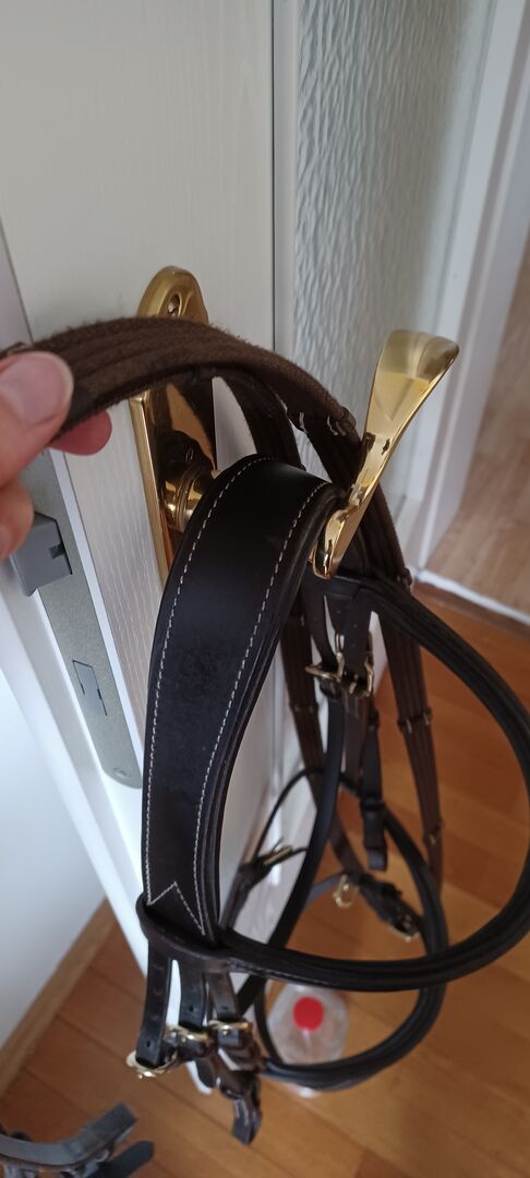 Bridle English combined brown white Cob Kerbl Classic - Offer beautiful bridle. Was only a few times on the horse because ed the thick skull is a tad too small unfortunately. Always well maintained, accordingly very good condition. Bridle hooks can also be easily opened and closed. Of course with associated reins (each side 140cm).
