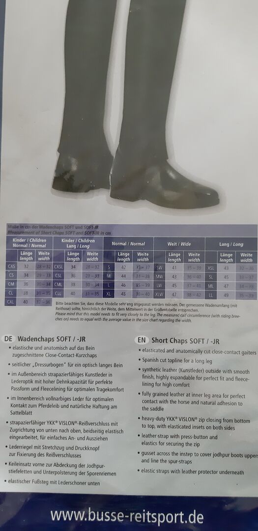 Busse Chaps Soft Leder, Kurzgröße L, Neu inkl. Verpackung (Busse Junior Soft)
