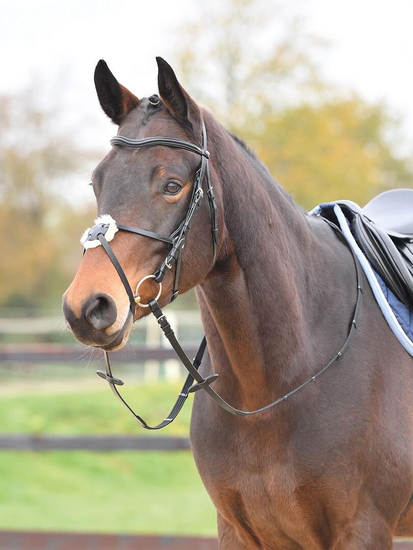 Busse leather snaffle MEXICO II WB incl. reins unused - For sale here an unused snaffle Mexico incl. reins with martingale sliders Size: WB/Full/Warmblood Cross point with genuine lambskin Throat strap adjustable on both sides