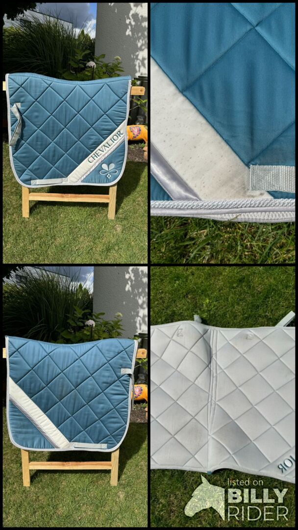 Ich verkaufe eine Chevalior Schabracke in türkis. Die Schabracke hat leicht Flecken (siehe Bilder), ist dennoch in einem guten Zustand. Sie ist in der Größe Dressur full.