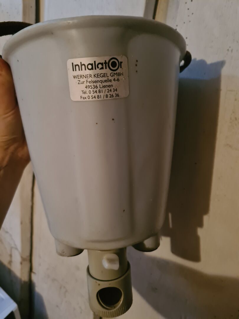 Cone inhaler horse - Sell my gladly used cone inhaler with basket and the nose pad for the face, the cups and the contact liquid.