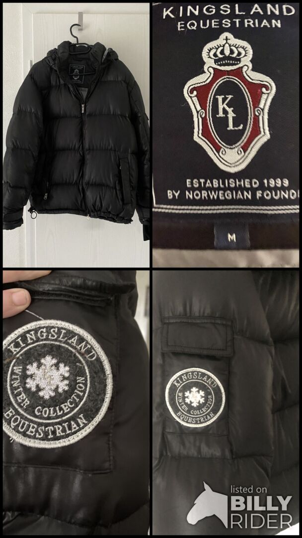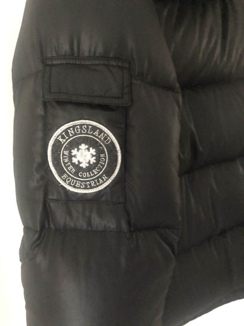 down jacket, winter jacket, riding jacket - Offer here a great, warm, thumb-jacket of the noble brand Kingsland from the winter collection! The jacket is cuddly and warm and has a practical, removable (zipper) hood with drawstring waist! The jacket has several inside pockets, two zipper pockets and an additional mobile phone pocket on the sleeve. The sleeves have a warming hand sleeve with thumb hole, which warms the hands but still allows freedom of movement! The cuffs can be fixed with velcro fasteners. At the bottom the jacket has an additional drawstring, so that it stays warm even in stormy weather! All zippers, velcro fasteners, drawstrings etc. are in perfect condition! The jacket has no stains or holes. The jacket is black and the lining is silver-grey. The jacket is a very high-quality down jacket! (NP was at 249 Euro) Shipping is no problem if you pay the costs of 6,49 Euro!