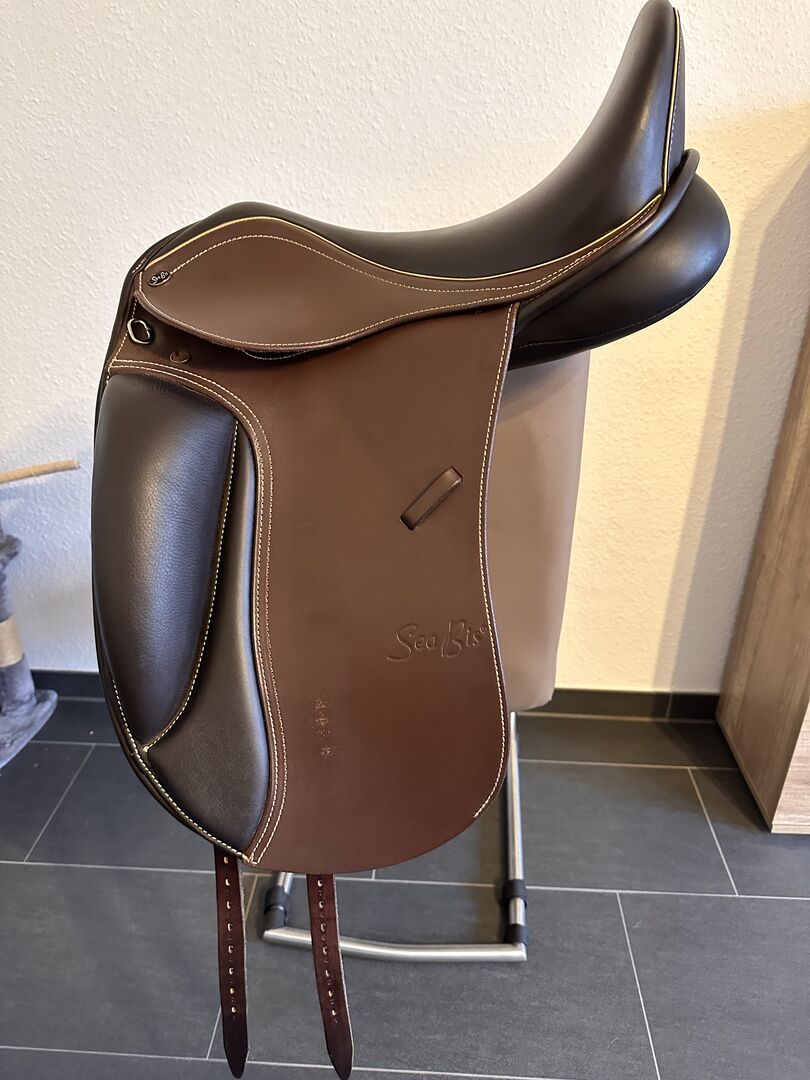Dressage saddle Seabis - Hello, I am selling my Seabis dressage saddle Vigo Pro. The saddle is just under 1 year old. It has always been very well cared for and only stored indoors, so it is like new. In addition, the saddle has been used very rarely. The original invoice is still available.