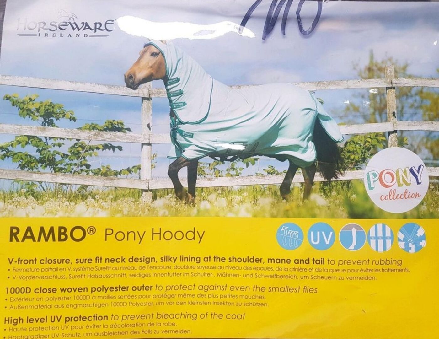 Eczema blanket Horseware Rambo Hoody Pony in 110 cm with fly mask - Have here a great eczema blanket from Horseware for you. Rambo Hoody Pony in 110 cm, I bought it myself used and unfortunately measured wrong at the pony, so it does not fit. It is in very good condition and incl. the fly mask.