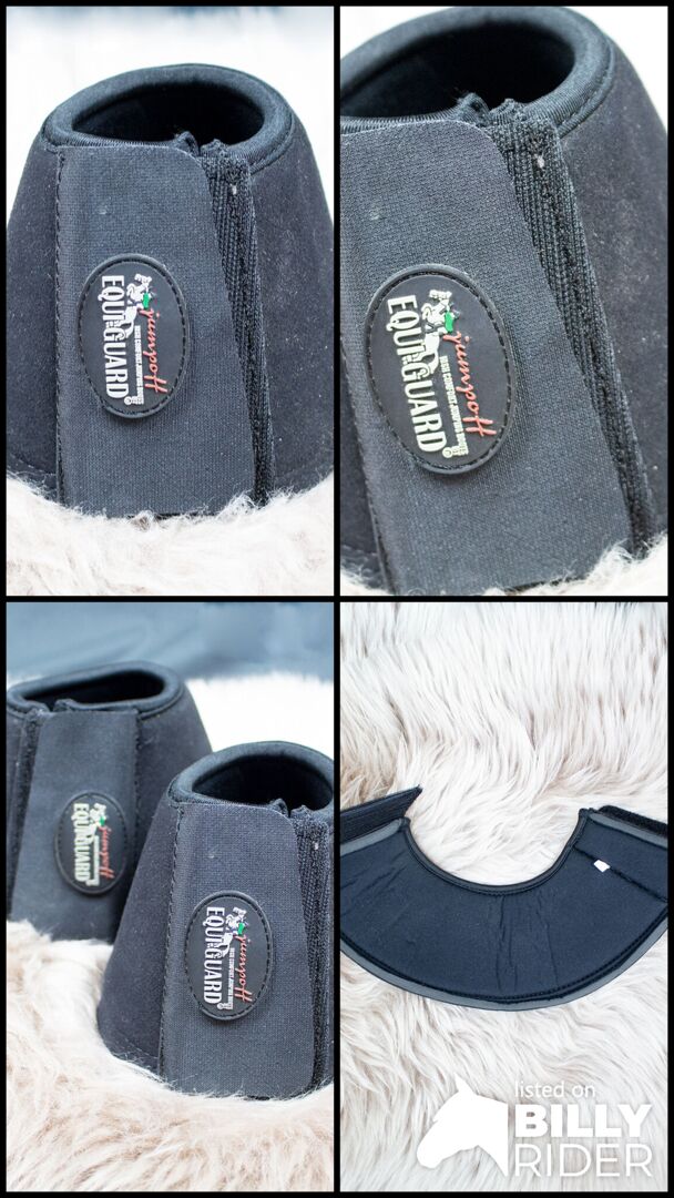Equiguard hoof boots black M - The Equiguard hoof boots are your perfect companion in everyday life. Quickly put on, they offer optimal protection for the horse's leg. The neoprene bells in size M are black. They come in a set of 2 and have only slight signs of use. To the seller's offerlaunch