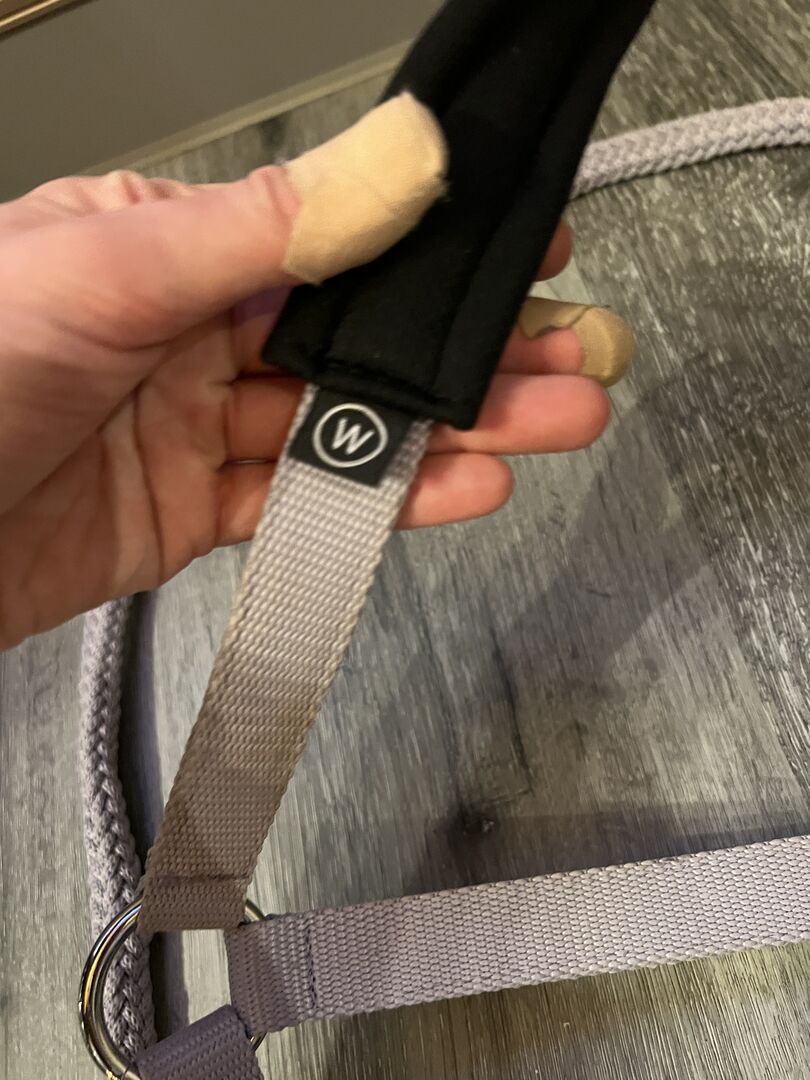 Brand: Eskadron Color: silk purple Size: WB Rope with carabiner Original price halter: 29,95€ New price knit: 12,95€