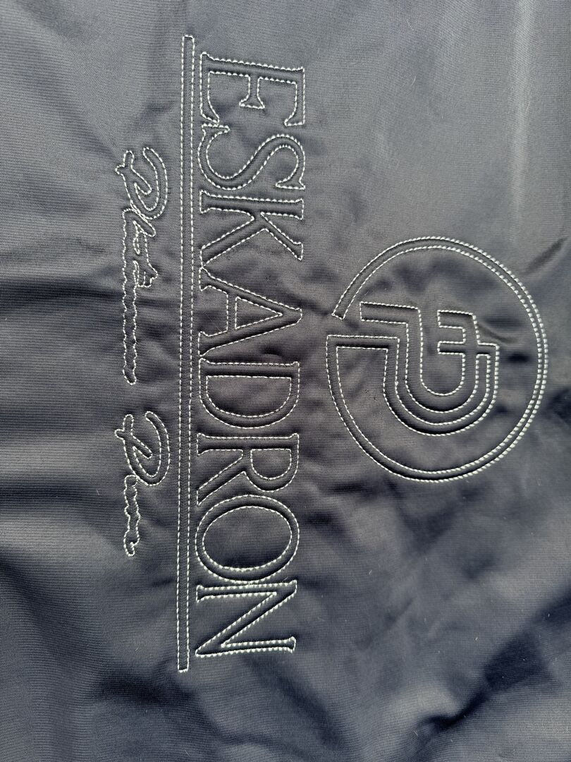 ESKADRON Platinum Pure blanket & matching halter - Back length 125 cm Rather a little larger, our pony normally had a back length of 135 cm. With matching halter for COB (see pictures). Ordered from Loesdau. Hardly used, washed, a few hairs are on it ☺️. Manufacturer's description: easy care optimum hold with crystal stones The Dura Crystal transport rug from ESKADRON Platinum Pure is a true all-rounder that proves to be the ideal companion. Made from sturdy Dura upper material with a fleece underside, which is particularly easy to care for and hard-wearing. Thanks to the tried-and-tested double chest buckle with Velcro fastening, removable cross surcingles and integrated tail strap, it sits securely and non-slip on the horse's back. In addition, there is the unmistakable design with a sturdy glossy collar with crystal stones inlaid on both sides, the Platinum Pure emblem on one side and the elegant Lurex cord on the wide glossy edging. Material: 100% polyester washable up to 30°C