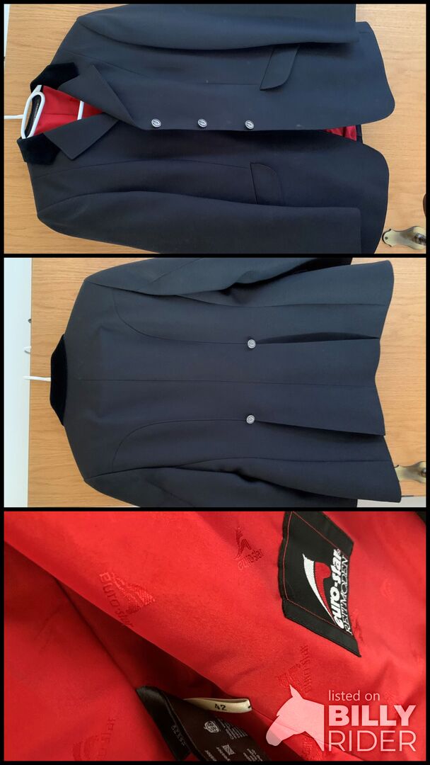 Euro Star tournament jacket / tournament jacket blue women size 42 - I sell here my blue tournament jacket from Euro Star in size 42 with a nice velvet collar. All buttons are present and firm. The jacket is worn, but in a very good condition and washed. I give it away, because it has become too big for me.