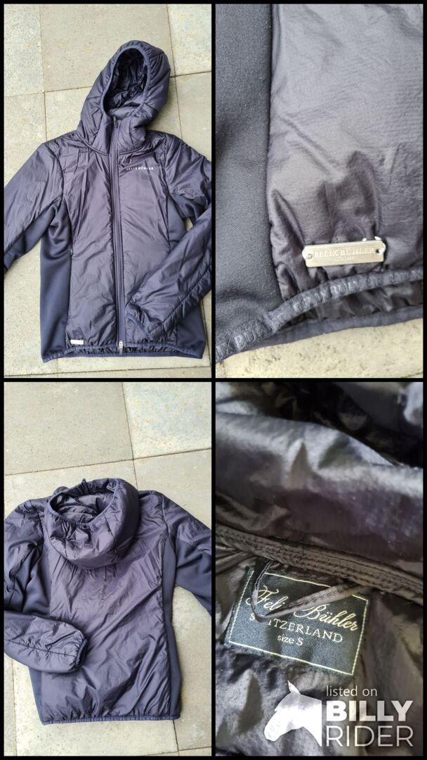 Felix Bühler hooded combination jacket navy S - Felix Buhler Hooded combination jacket Model Mina size: S color: navy - robust, soft padded nylon - stretchy performance stretch material - two front zipper pockets - two-way zipper - elasticated cuffs and hem - adjustable hood - hood can be fixed with press stud Worn but top in order.