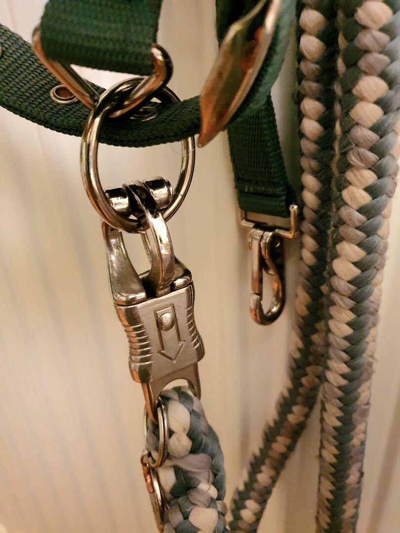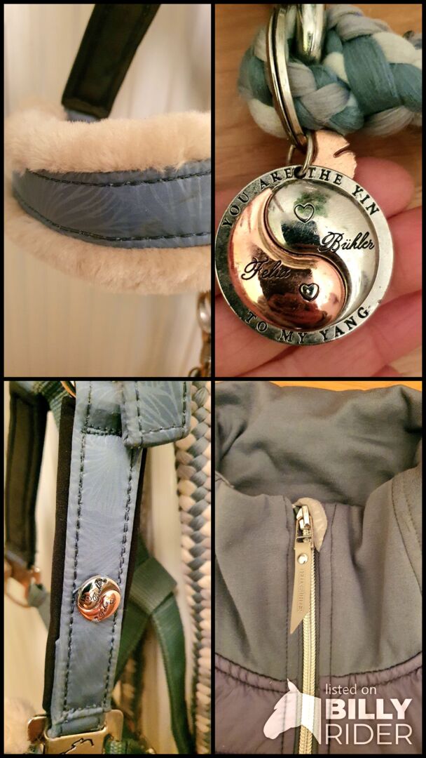 -halter ying-yang in color jade, size PONY, matching rope with panic hook (17€).