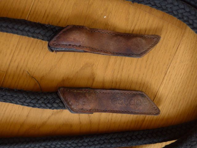 The reins are used and much too good to just lie around; need some leather grease. The leather strap on one buckle has come off; I have attached a cable tie there; this is more of a visual issue and works. If you don't like it, you can certainly have your saddler attach a strap. Magnets are sewn into the tabs at the end of the reins so that they can be used open or closed.