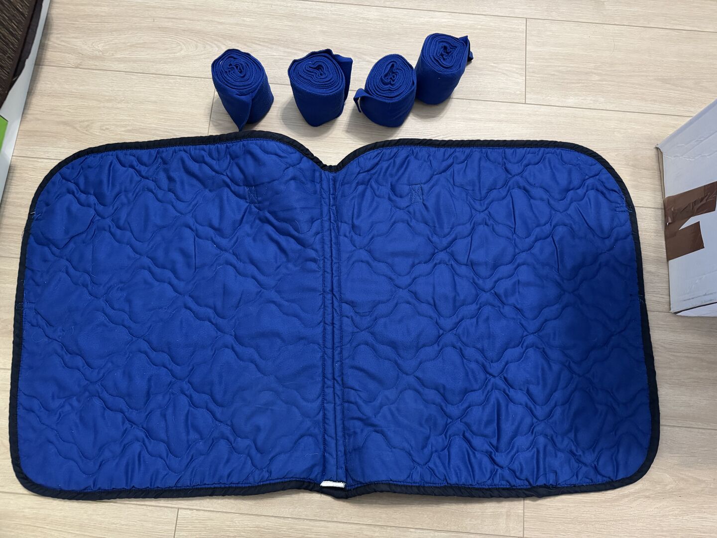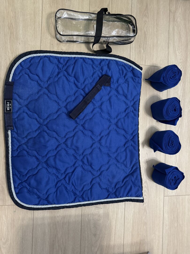 HKM saddle pad and bandages WB DR - Set from HKM with a saddle pad in warmblood dressage size and 4 bandages The matching 155cm sweat rug is also available on request