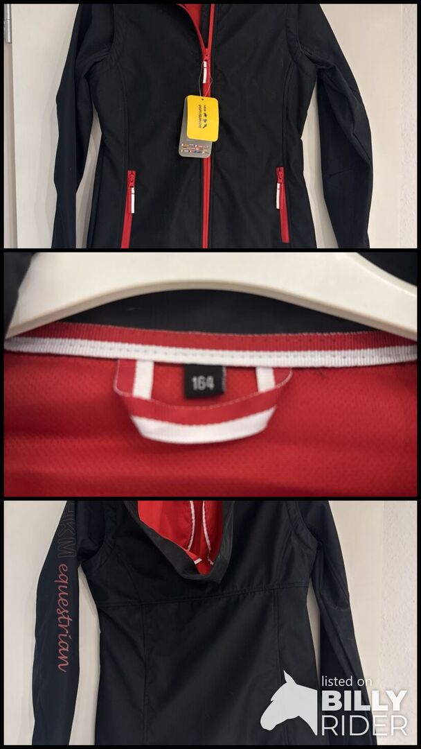 HKM softshell jacket size 164 - New, never worn and still with label softshell jacket in size 164 for sale. Color black/red, with detachable hood. Private sale therefore no guarantee or return. Shipping possible for a fee.