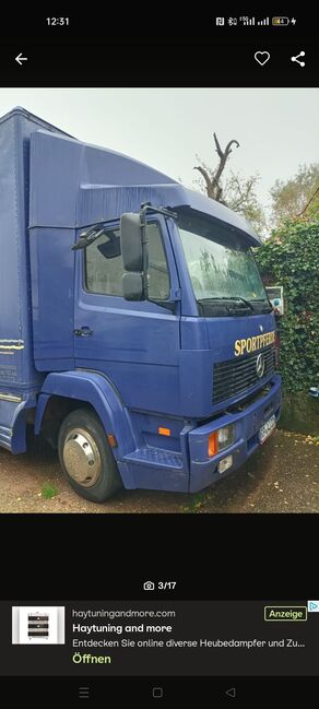 Horses Truck - Horse truck 7.5t with Dickenherr body on Mercedes Benz 814L, EZ 09-1993, KM status 352800 with air suspension, TÜV until 03/26. Horse area with 4 parking spaces (3 in driving direction, 1 transverse), adjustable division, camera surveillance. Access via wide ramp with side barrier. Large tack room with access from the outside and access to the horse area. Tack room with three saddle racks and plenty of storage space. Age-related rust on the trim and on the subframe (harmless). Cabin with three seats and roof hatch, main battery switch to protect the batteries.