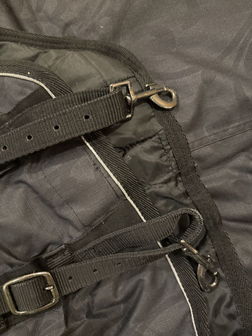Superdry limited highneck rug with sweat function in black. It is lined with 400 g and is 195 cm long for horses with a height of 175-185 cm. All straps and buckles are intact.