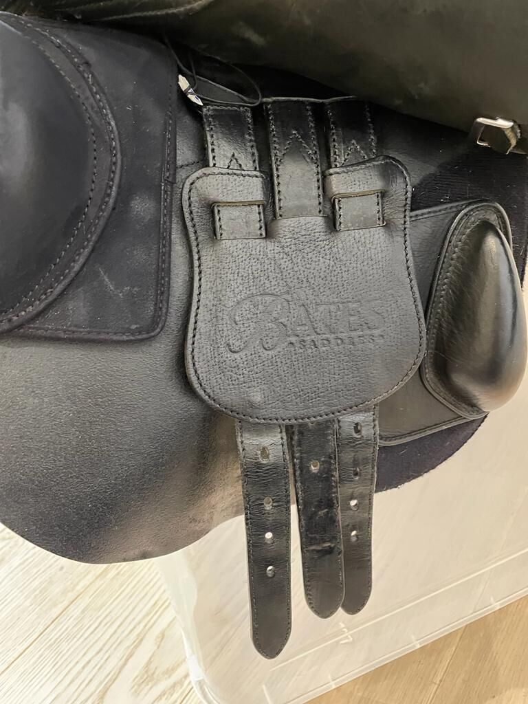 Jumping Saddle Bates Elevation DS+ 43cm (17") - Super well maintained saddle in TOP condition, very rarely used, very comfortable to sit on, Velcro thimbles in various sizes included, without stirrups and stirrup leathers, always stored dry, regularly maintained. Size 43cm (17") With CAIR Cushion System and EASY-CHANGE Gullet System. Production in 2008.