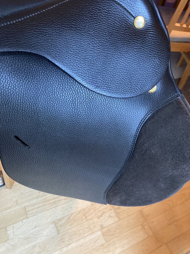 Jumping saddle brown Hippos/Appaloosa/Prestige - The saddle is as good as new, was only for fitting on the horse. KW 32, 17". Mare is unfortunately not allowed to jump due to an injury. Has been stored dry and tempered. Shipping possible against payment of fees.
