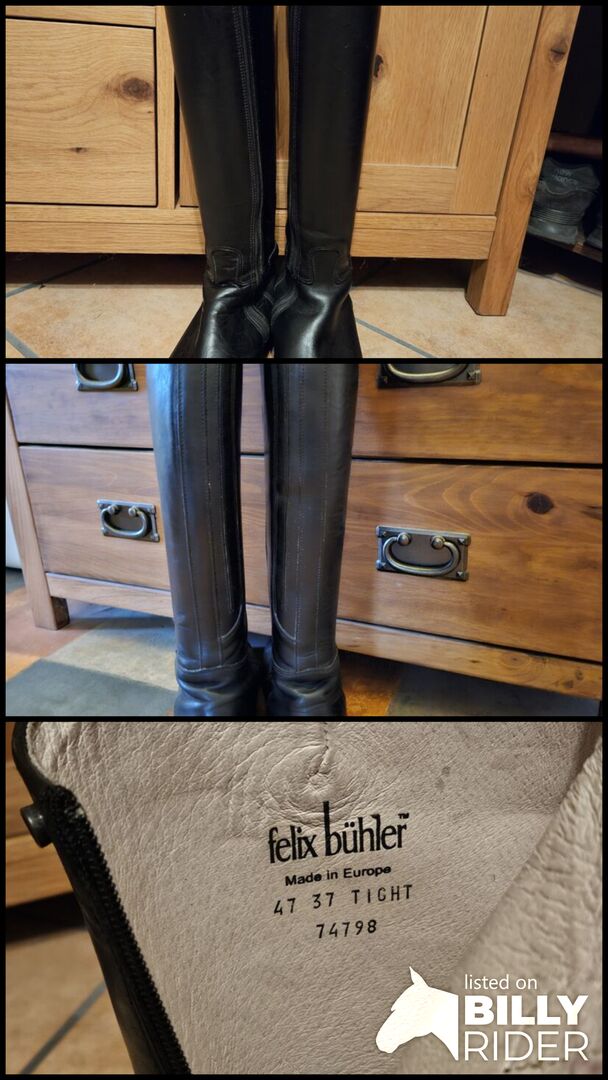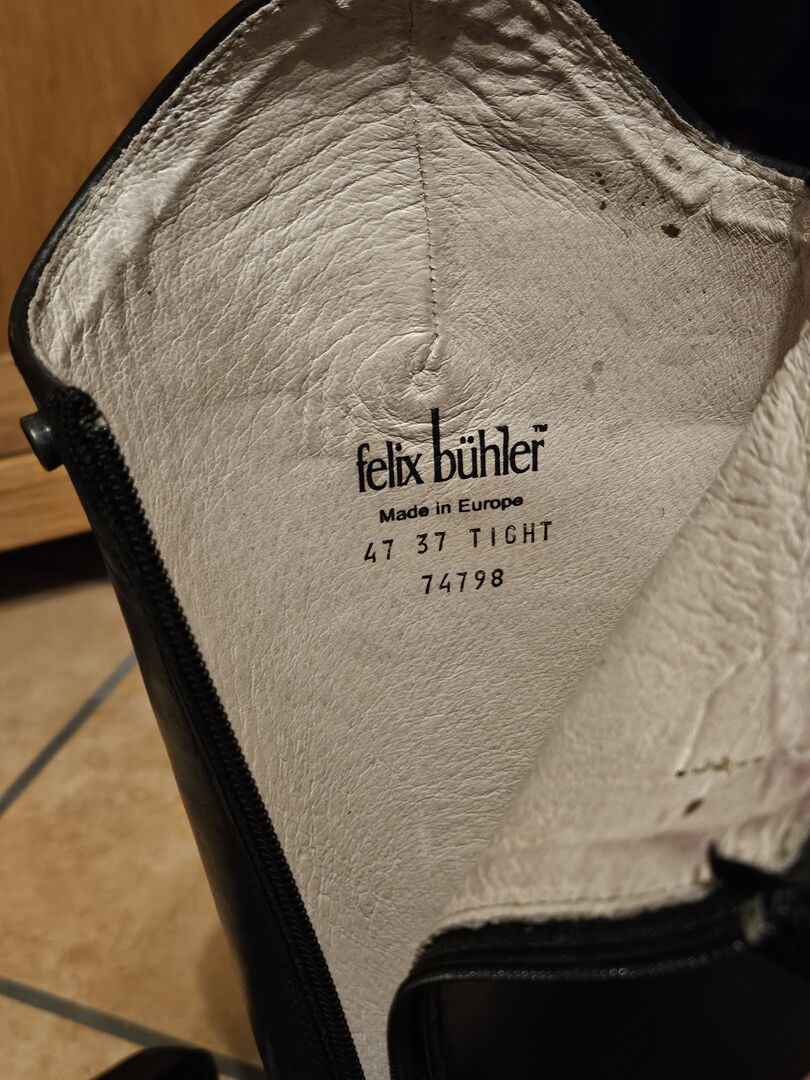 Leather riding boots Felix Bühler size 42 - I am selling leather riding boots from the brand Felix Brühler. The boots have been worn approx. 5 times and are in great condition. Heel, zippers and leather are like new. There are a little more creases on the right than on the left. Otherwise a great boot.