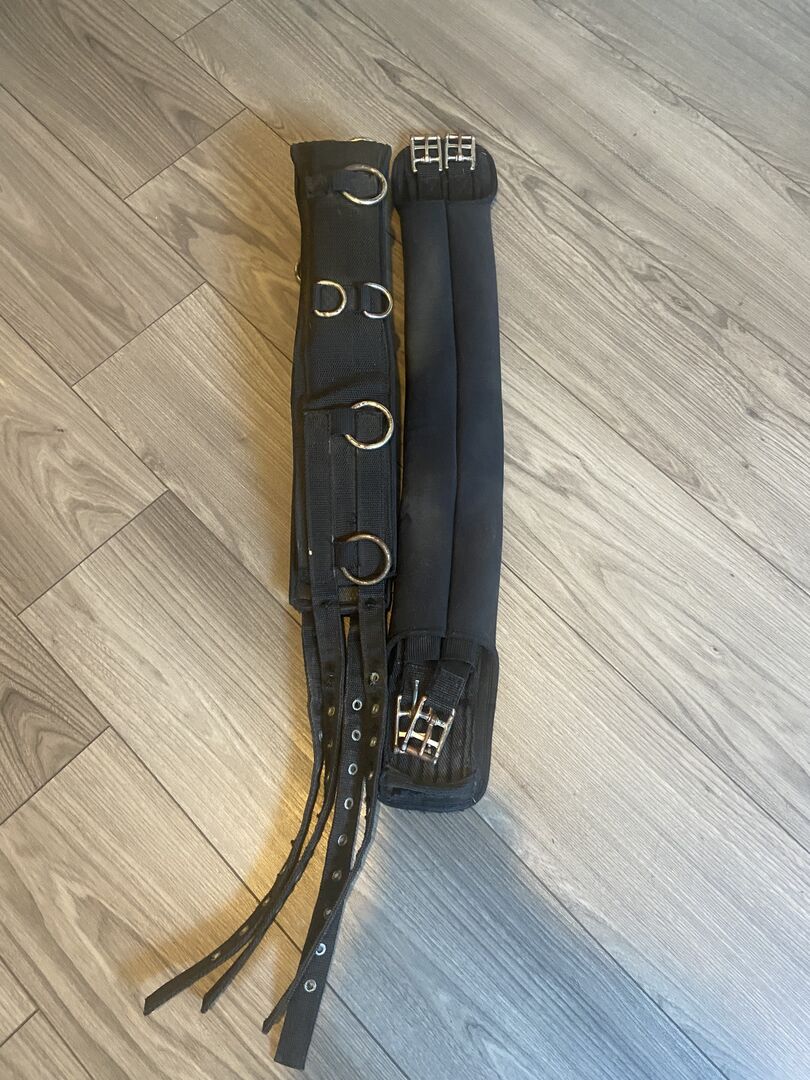 Lunging girth with girth - Lunging harness incl neoprene girth for sale. Size Wb and 70cm Rings of the lunge belt is a little rusty but still fully functional. Individual purchase is possible