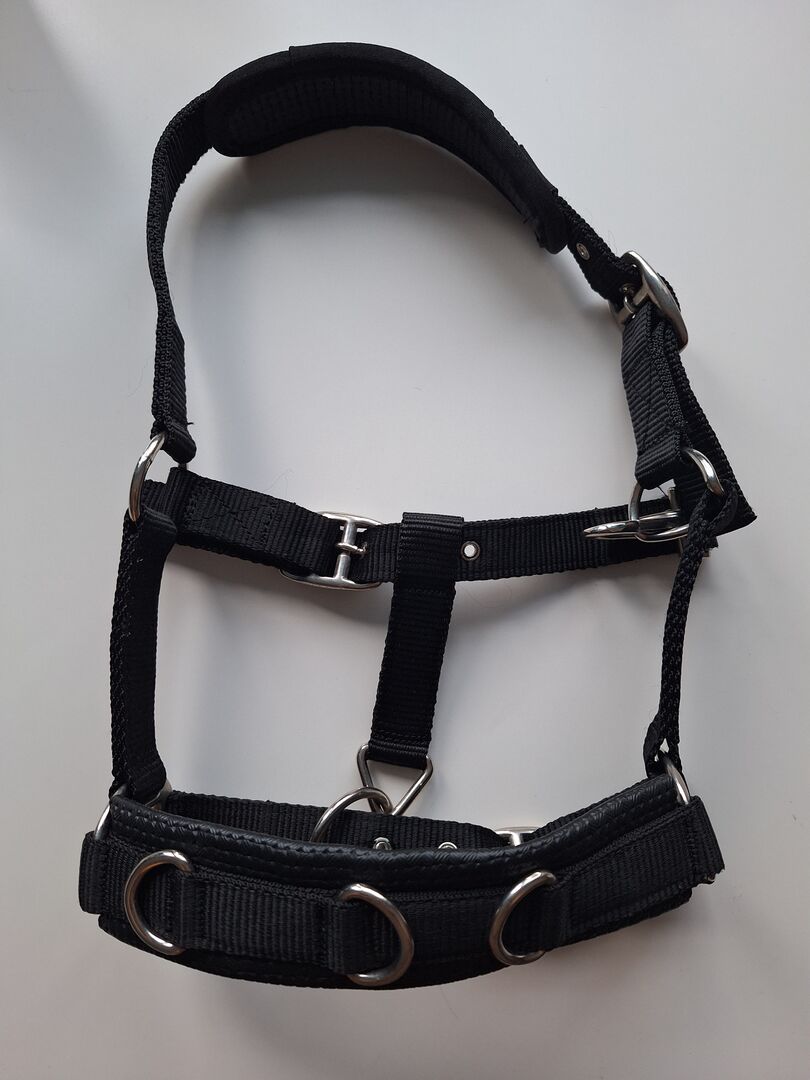 The halter has been re-sewn and now fits a mini-shetty (95 cm). If you are interested, I can also give you the exact measurements.