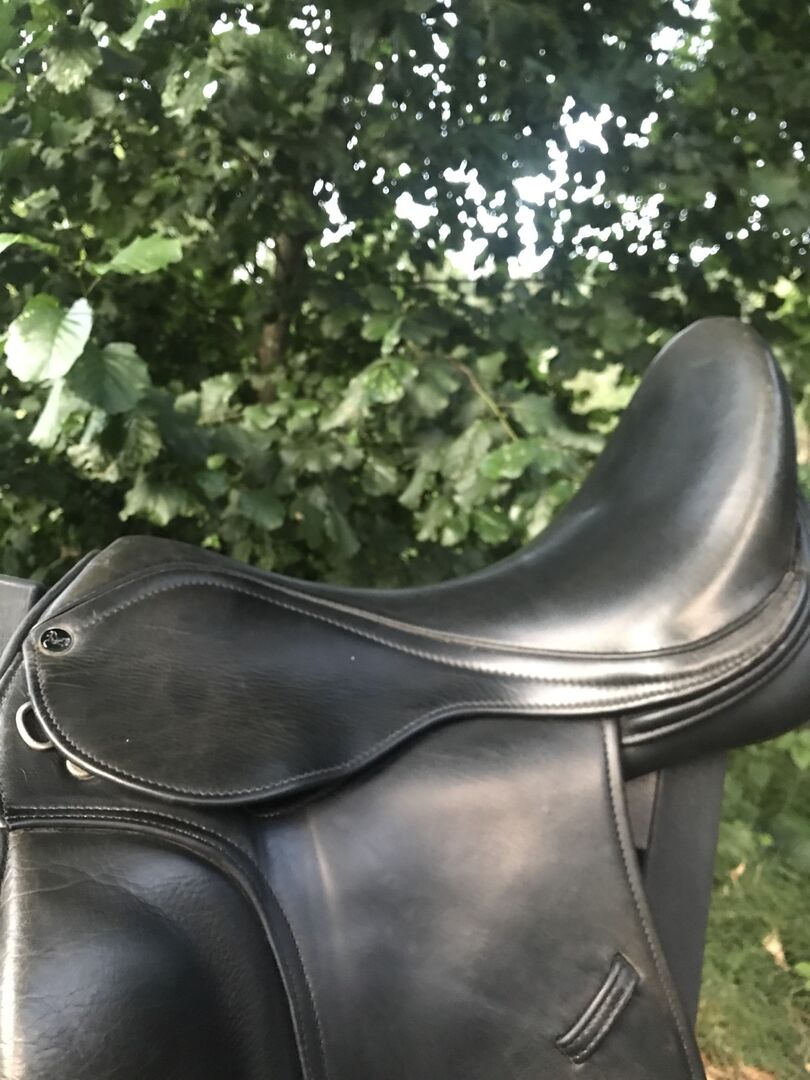 Original price: 2.200€ Size: 17 inch Age: approx. 2 years This is what the manufacturer writes: Leonhard, a classic dressage saddle with a deeper seat. Leonhard is THE saddle for riders who appreciate seat support through the saddle, have a quiet leg and do not want or need too big pommels. Also Leonhard is very suitable for riders with longer thighs. doubled calfskin, French panels.