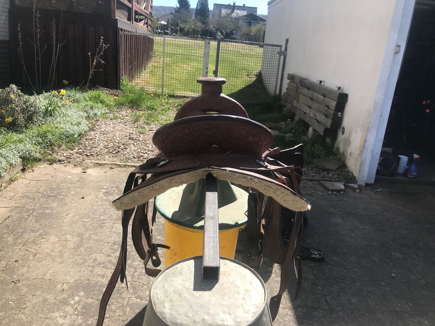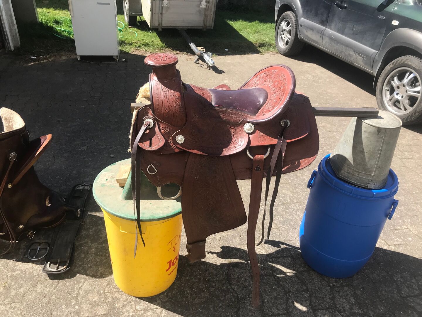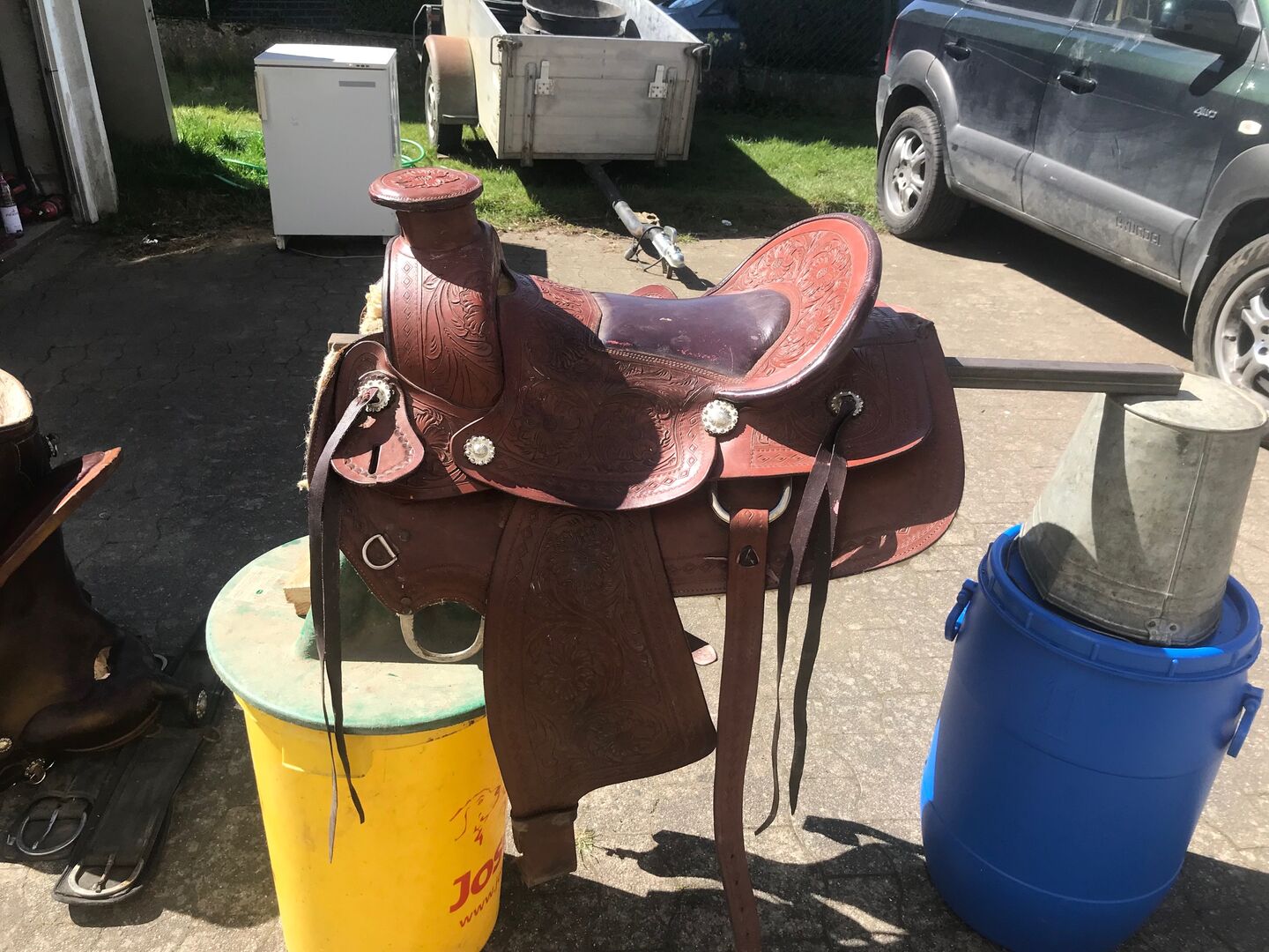 Mexican style western saddle - Tree probably Semi Quarter. Without stirrups and girth. With latigo and offbillet. Optional leather or metal stirrups and three versch. Girths against surcharge Under exclusion of redemption and warranty according to EU law