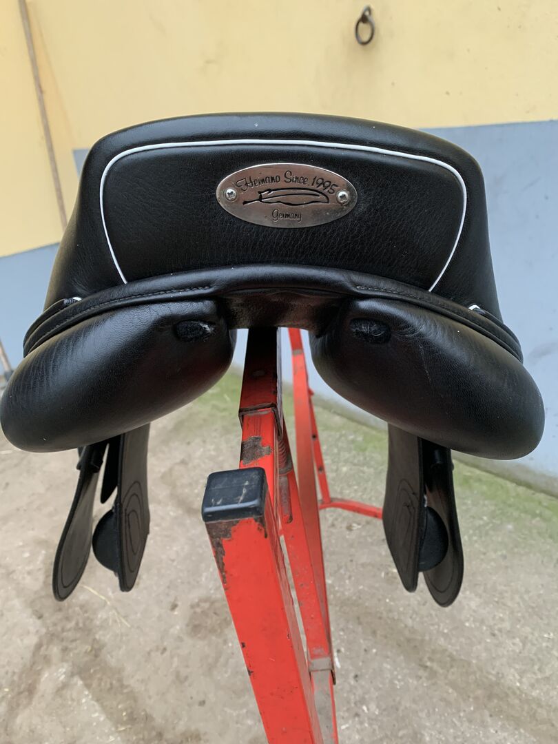 I am offering a new saddle from Hermano "jumping enjoy". It was won at the show and has been on the horse twice. Unfortunately, it is not suitable for my horse in the long term. The saddle is 18 inch, with a medium chamber. The saddle is like a Prestige 33/34. The Hermano has an A+2 cut of the saddle flaps and is therefore also suitable for taller men. If you are interested, please get in touch.