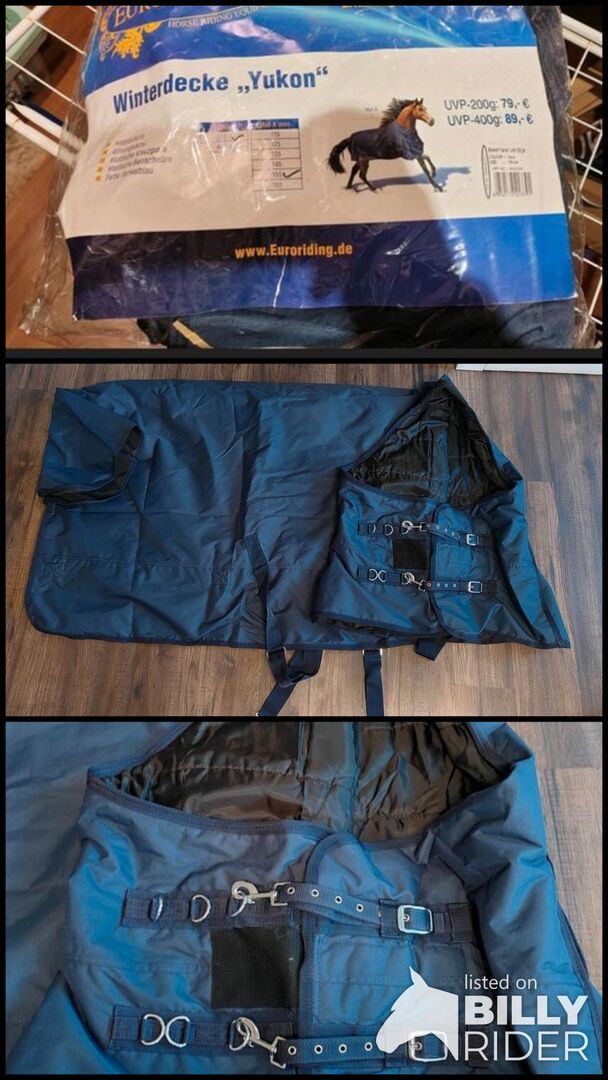 Outdoor blanket from Euroriding - For sale is this 200 gram blanket from euroriding. It has never been in the stable and not on the horse. Size 155 cm Color blue