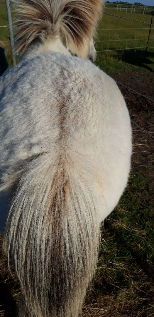 Fraeknir was registered as an earth color (new name Braunisabell) at foal registration, but turned out to be a dun after the first coat change (not tested). He was awarded a prize by the SH/HH studbook at the foal evaluation.