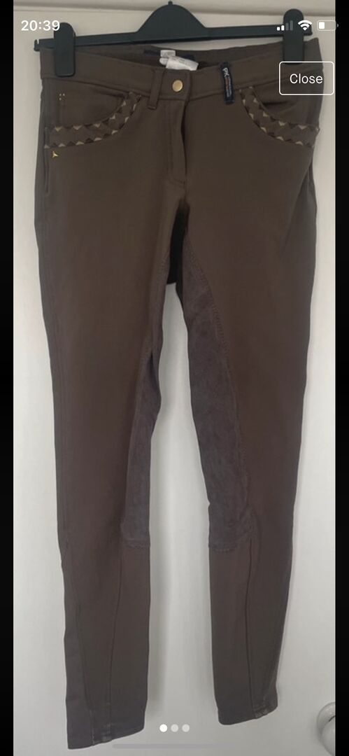 PK International Breeches. Full suede seat. Saddle brown colour. Size 8/10. Hardly worn, so still in good condition.
