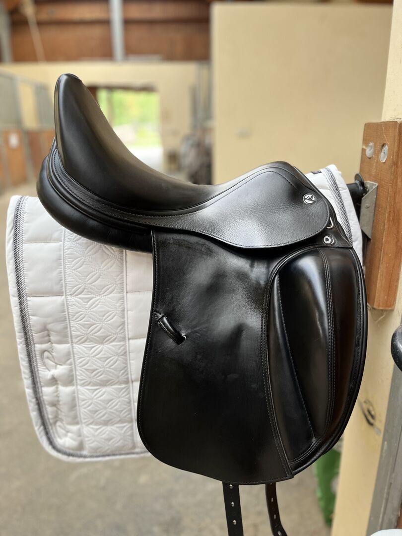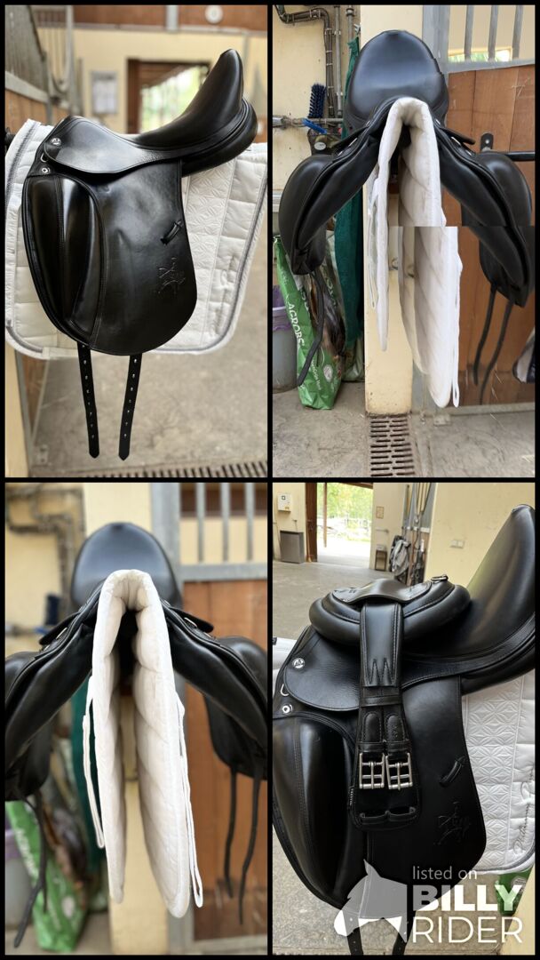Prestige X-Helen FS dressage saddle - Very well-maintained Prestige dressage saddle, week 17/35, purchased in 2022 and regularly serviced - most recently on [yesterday], when the saddle and saddle tree were confirmed to be completely in order. The saddle offers a deep, comfortable seat with a narrow waist for particularly close contact with the horse - without restricting its movement. Anatomically shaped, soft knee rolls adapt perfectly to the horse's shoulder and ensure an excellent connection between rider and horse. Saddle flap size S Model: Prestige X-Helen FS K Year of manufacture: 2022 Condition: Very good, technically flawless Particularly deep seat & narrow waist Anatomical knee rolls & panels for maximum shoulder freedom Elegant design Accessories (e.g. girth) optional on request Price VB Please contact us if you have any questions or are interested! Saddle can be shipped or can be taken for a try-out against a deposit of the total amount.