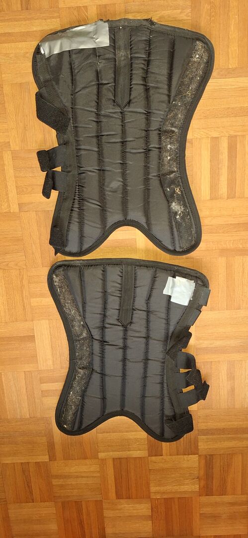 Rear transport gaiters - Black transport gaiters size Full. Rear: Length 77cm, small defect on the outside of one, see photo. But fully functional as all Velcro straps are present. I would add the front ones free of charge if required. Both have small defects on the outside. And one is missing 3 velcro straps. See photo. Length 53cm.