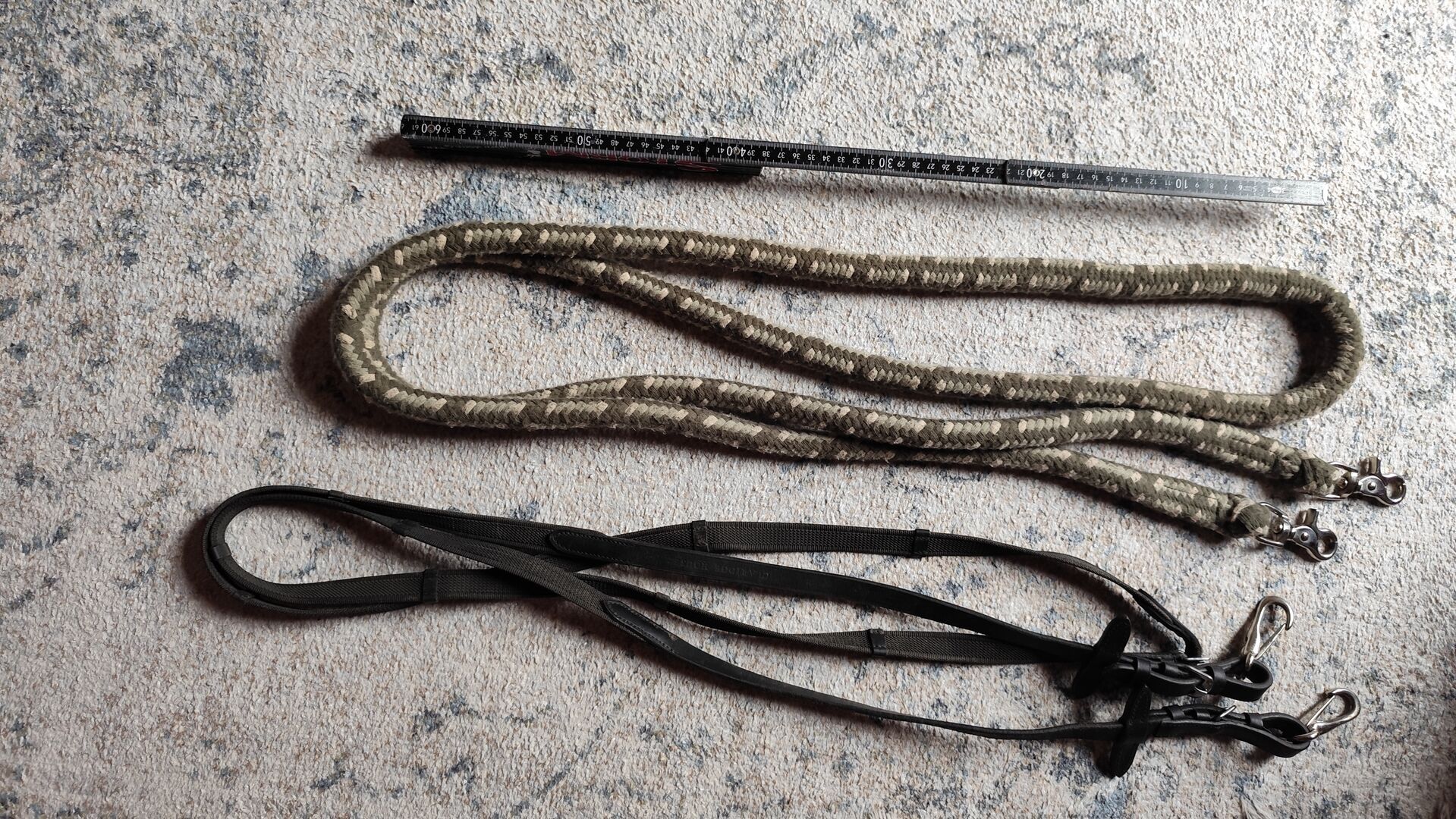 Reins, long - The fabric reins are a bit worn - I would give them away.