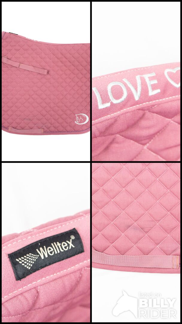 Riderschoice Saddle Pad with Welltex® Mauvewood DR - The Riderschoice dressage saddle pad with Welltex® is your perfect companion in everyday life. The saddle pad was created in a collaboration between Riderschoice and Back on Track. The special thing about the saddle pad is not only its great old pink color, but the innovative Welltex® material. This is located on the inside of the saddle cloth and can reflect the body heat of the horse in the form of infrared radiation. This form of energy can increase the well-being and accelerate the regeneration of your horse. In addition, the Welltex® material can regulate perspiration and moisture as well as thermoregulate. Another advantage is that the material can increase the horse's blood circulation. It has an anatomical shape which is optimal for clipping under saddle. The saddle pad is in very good condition and has only slight signs of use such as discoloration from the saddle. To the seller's offerlaunch