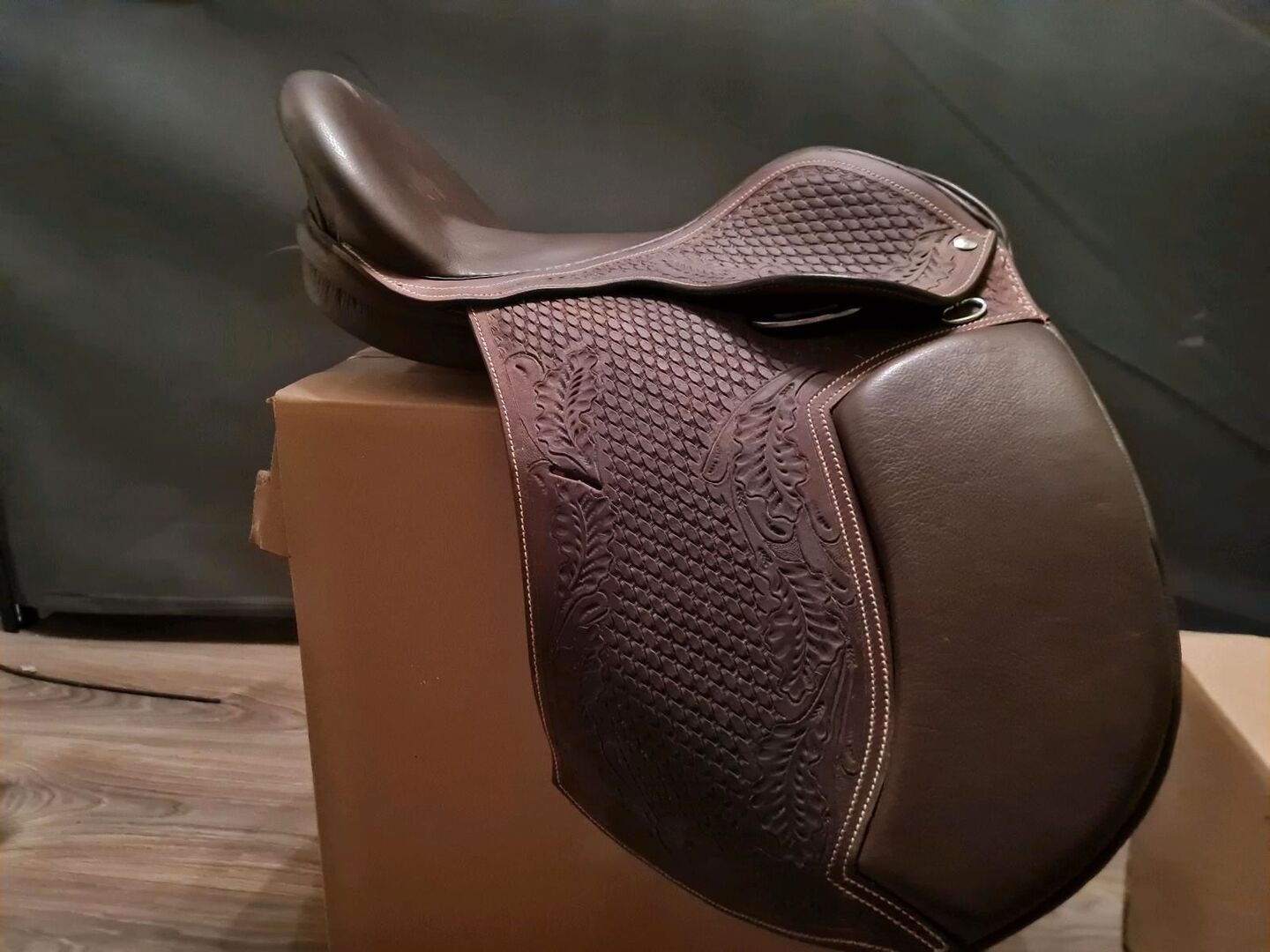 Saddle leather tree - Beautifully stippled leather tree saddle in brown for sale.