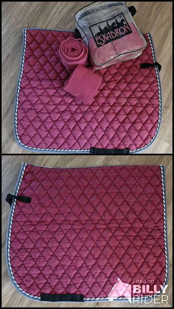Saddle pad Equest Fuchsia with 4 bandages Eskadron - I am offering a great dressage saddle pad Cotton by Equest with gray cord and 4 matching bandages by Eskadron.