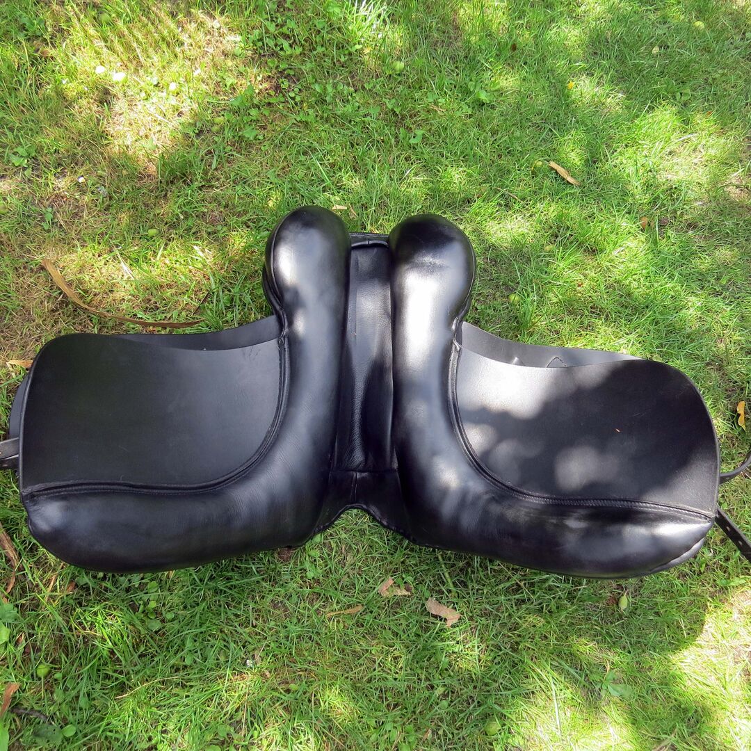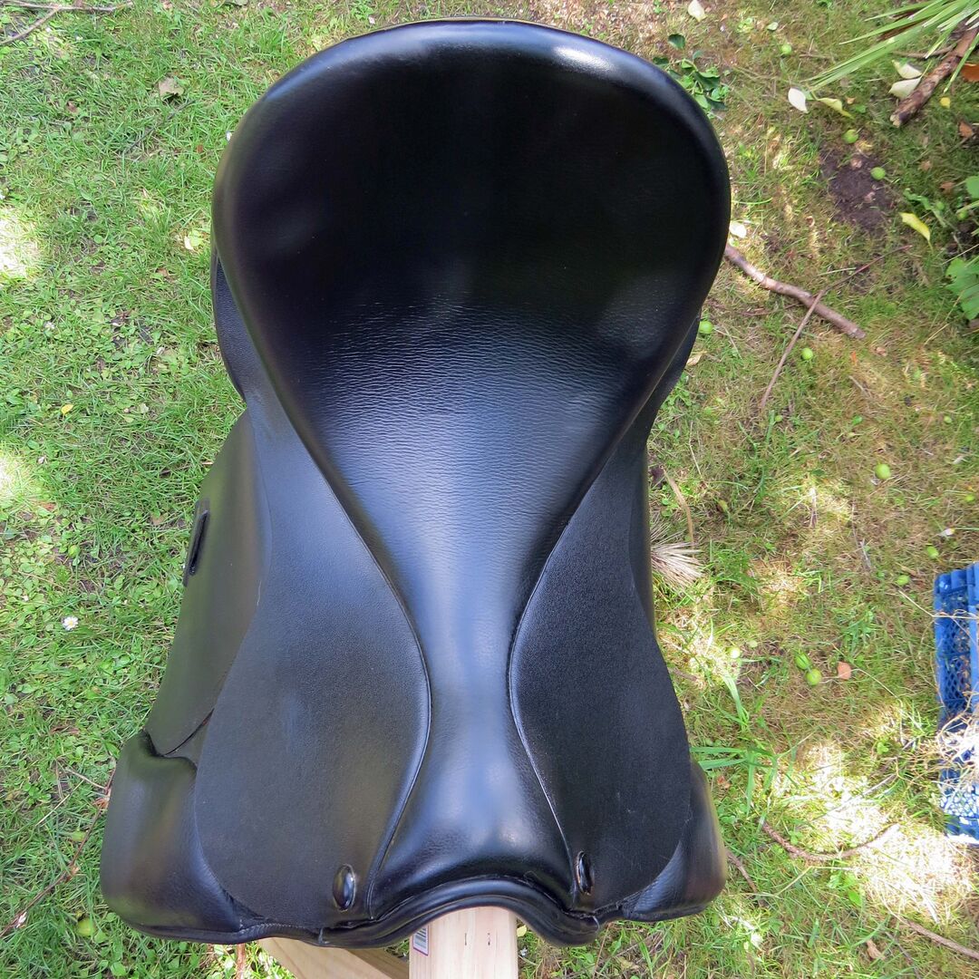 Sell dressage saddle - Dressage saddle for sale in almost new condition made of buffalo leather, high quality leather and very well made (made in Spain). Fitted on a formerly narrow Hispano-Arabian mare and no longer fitted after just a few weeks, so practically as good as new. New price was 1400 €. The cut is similar to a Prestige saddle.