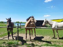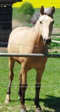 Sioux German WARMBLUT in SPECIAL PAINTING Shiny gold falcon - Sioux, a beautiful purebred warmblood FALBE (just turned 2), very well developed, is looking for a new herd or pasture. He was "born free" and has never been in prison. He is therefore completely robust, in perfect health, already very well muscled, very well developed for his age, already weighs over 500 kg and is also very well socialized. He is growing up on very large pastures in a small herd. He is very suitable for all types of riding, leisure, western, jumping, eventing or hobby dressage. He would also be up for all kinds of tricks, as he really enjoys retrieving. He would be very happy if he could be encouraged. In terms of color he is a rare eye-catcher, he has a great metallic sheen that you only see in Achal Trekkiners. He would also bring great color to your herd. His sire was also ridden in show jumping, where he showed very well. Sioux is very playful, curious, very willing to learn and would be great for current ground work. He would be very happy to be encouraged. He is very affectionate, loves people and would certainly make a great buddy for life. Particularly suitable for young girls who want to train their own horse, who will then go through thick and thin with them, as a super reliance buddy. If he has aroused your interest, you are very welcome to contact us.