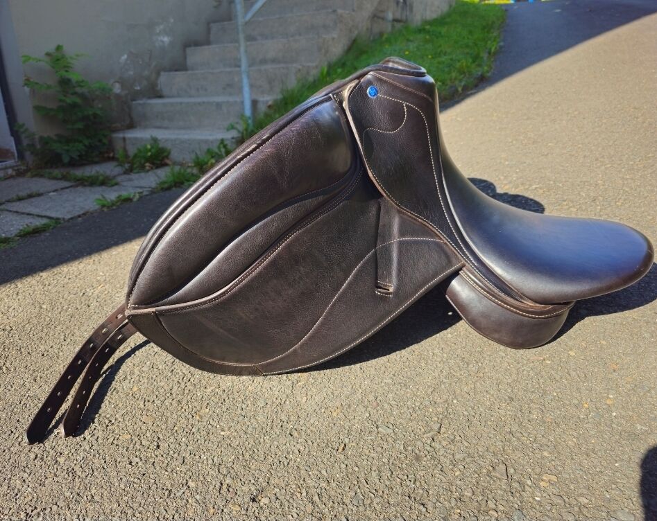 Manufacturer: Horse Star Model: Champion Color: Dark brown/several shades of brown Year of manufacture: 2012 Seat size: 18 inch, approx. 42cm Chamber: see pictures Condition: little used normal traces of use, well maintained no defects. - The chamber width is individually adjustable and the gullet system is adjustable. - Equipped with V-girth system and narrow, replaceable gullet plate with good contact to the horse! 6-fold girth strap fixation for an optimum over-girth position prevents movement restrictions in the elbow. - Saddle flap recess in the stirrup leathers for optimum thigh closure - Cushion quilting for more freedom at the withers New Price was over 4000€