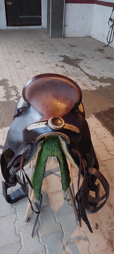 Western saddle incl pad and girth - The saddle is in good condition with the normal signs of use. Chamber width 1, Roundskrit. In addition, a matching wool felt pad from CSF, as new and a 32 mohair girth from Mustang also as new.