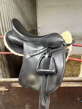 I am offering a Wintec Bates saddle made of full grain leather. The saddle has an 18.5 inch seat and has been on my coldblood until now. There is currently a white gullet plate in it and a purple one is also available. The saddle has been converted from the care version (air cushion) to normal padding and is therefore even more flexibly adjustable than it already is. It has normal signs of use but no damage. No seams or similar are open or broken. The saddle will be cleaned again before sale. You are also welcome to contact me by phone (01723994525)