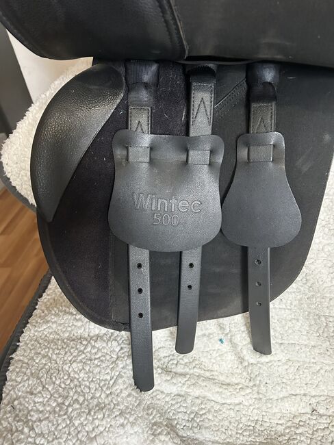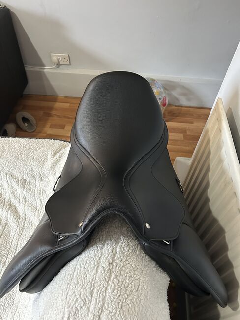 16.5 inch standard fit Wintec saddle. Black general purpose hart. Currently has the red bar fitted but comes with all the changeable bars. Only used a handful of times but unfortunately isn’t getting used due to retiring my horse. It’s in really good condition no rips ect Collection only please